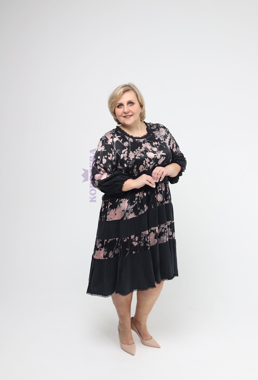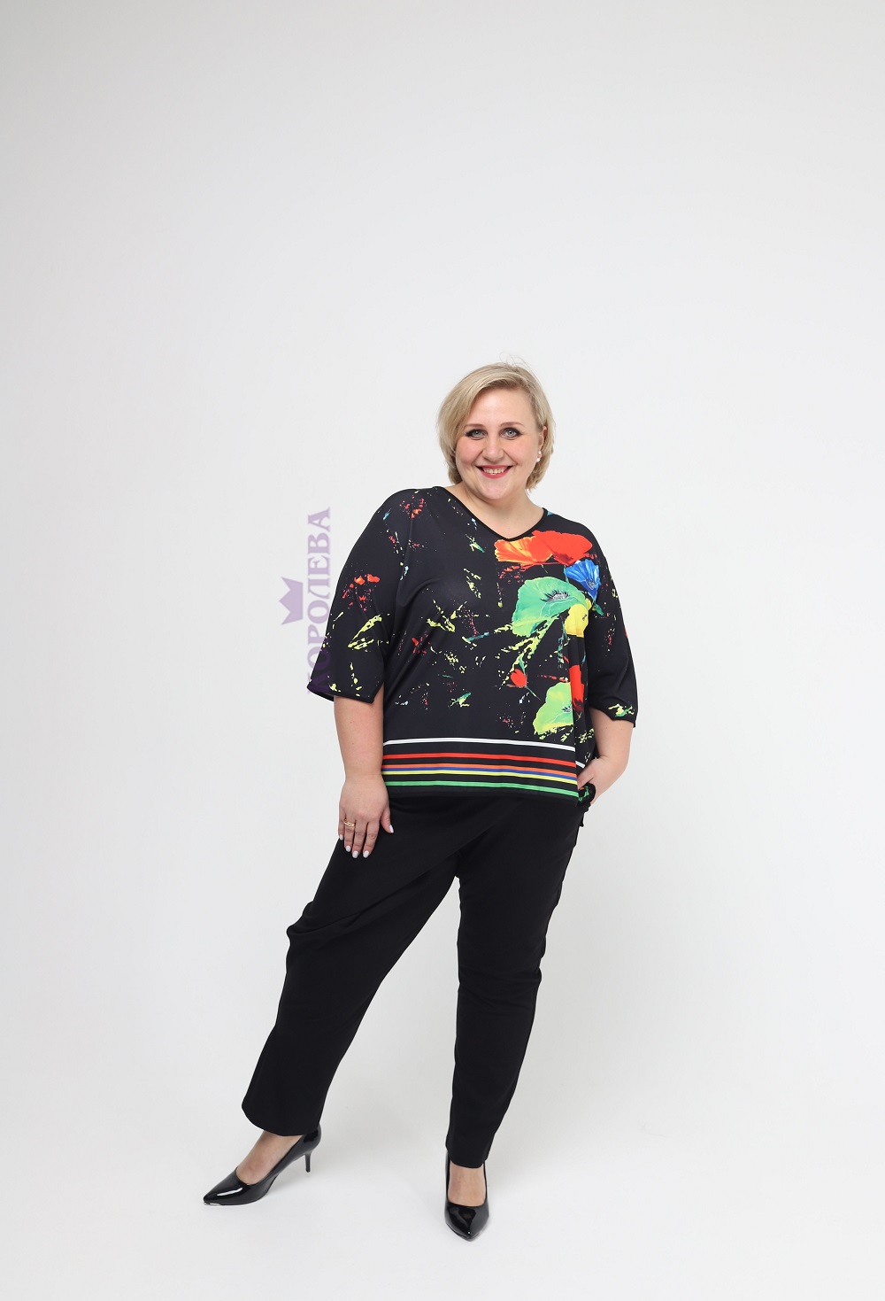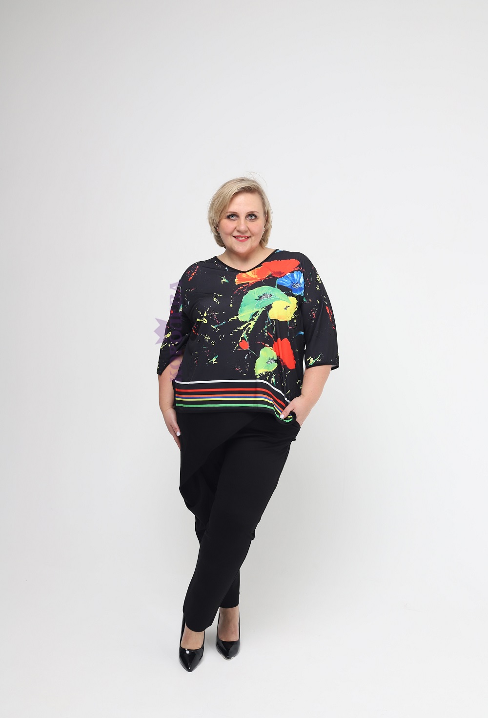 Элегантная черная туника с изображением цветов